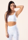 Спортивный бюстгалтер с лёгкой поддержкой и антибактериальным покрытием, нейтрализующим неприятные запахи, принадлежит коллекции Active бренда Guess. Бюстгалтер с тонкими подушечками. По бокам дышащий, сетчатый материал. Бретели удобной ширины перекрещиваются на спине. Эластичная лента под грудью обеспечивает надёжную посадку. На груди логотип бренда. Рост модели 176 см. Демонстрируемое изделие размер S. Состав материала: переработанный полиэстер 75%, эластан 25%. Цвет: голубой/белый
