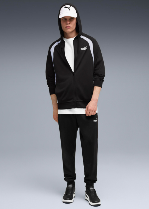 Мужской комплект одежды от Puma — это стильный и модный выбор для активного образа жизни. В комплект входит удобная толстовка с капюшоном, который можно затянуть шнурком, и застежка-молния спереди. По бокам расположены открытые карманы. На передней части изделия находится логотип бренда, а края оформлены резинкой для дополнительного комфорта.