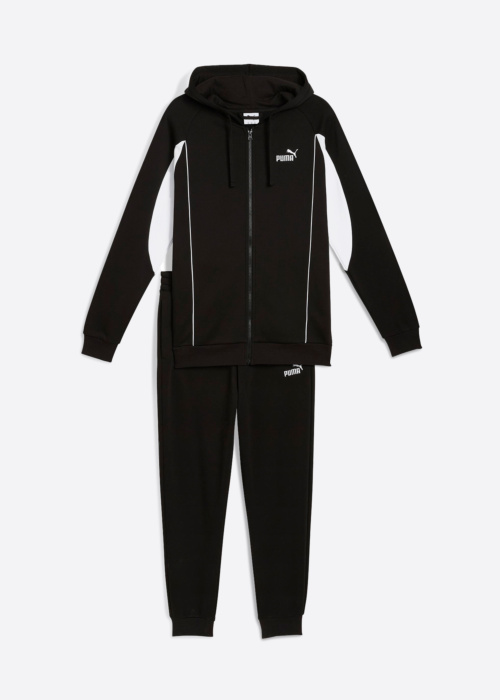 Мужской тренировочный комплект от Puma — это удобный и стильный выбор для активного образа жизни. Он включает в себя капюшон, эластичный пояс и мягкую, теплую ткань, что делает его практичным и комфортным для движения. Спереди имеется застежка-молния и вышитый логотип, а также открытые карманы по бокам и шнурок на поясе для дополнительного удобства.