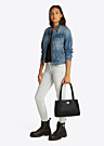Сумка Tommy Jeans для женщин выполнена в американском стиле, который сочетает в себе классический и вечный дизайн. Она достаточно вместительная и украшена логотипом бренда на передней стороне. Внутри сумки предусмотрены как открытые, так и карманы на молнии, что обеспечивает удобство и функциональность.