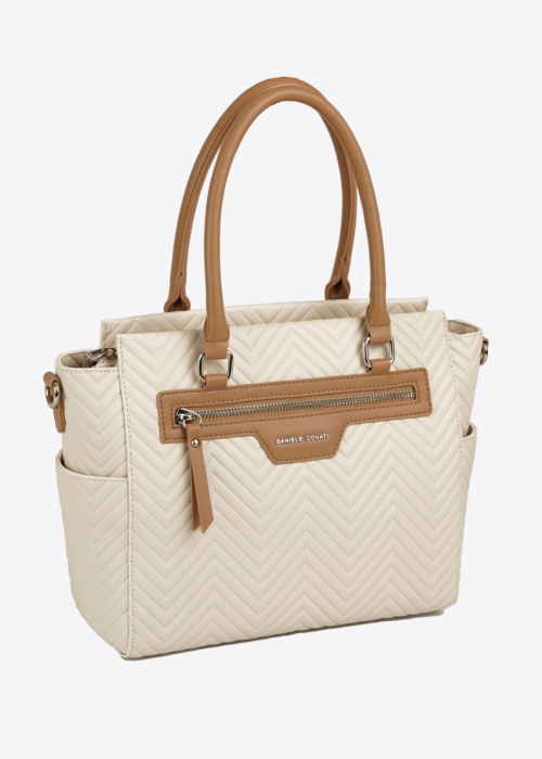Женская сумка от Daniele Donati — это стильный и вместительный аксессуар, который идеально подходит для повседневного использования. На передней части сумки расположена фирменная надпись, а также карман на молнии, что удобно для хранения мелочей. Внутри сумки предусмотрены как открытые, так и закрытые карманы, что позволяет организовать пространство и держать все необходимое под рукой.