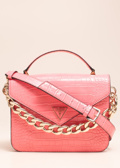 Яркокрасочная и шикарная сумка Guess отличит тебя от серой массы. Сумка изготовлена искусственная кожа, основное отделение открывается магнитная кнопка, дополнительные карманы расположены сзади, а также внутри. Настроение создается шикарным декором поверхности и акцента добавляет цепочная декорация. Внутри 3 открытые секции , также у товара 6 карманов для карт.