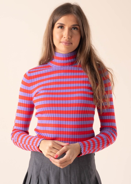 Красивая кофта Esprit привлекает взгляд. Двухцветная кофта с высоким воротником выполнена вязкой в резинку. Привлекательная оборка украшает края рукавов и нижний край. Приятная на ощупь ткань обеспечивает комфорт при ношении. Рост модели 178 см, носит размер S.
