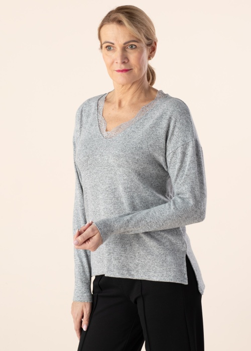 Женственный свитер Esprit подходит как для повседневнего, так и представительного дня. Вискозный свитер - приятно мягкий и удобный. сзади- застёжка на пуговицы и выразительности добавляет кружево на горловине. Удобства добавляет эластичность материала. Рост модели - 178 см и носит размер S.