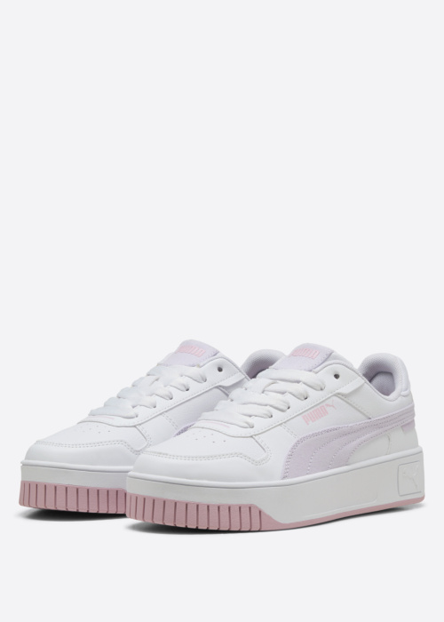 Кроссовки для девочек Puma Carina — это стильный и современный выбор для молодежи. Они оснащены подошвой на платформе, что делает их модным и актуальным вариантом. На боковой части обуви размещены фирменные логотипы Puma, подчеркивающие принадлежность к известному бренду. Верхняя часть кроссовок снабжена шнуровкой, что обеспечивает удобную фиксацию на ноге. Перфорация в области носка способствует дополнительной вентиляции и комфорту.