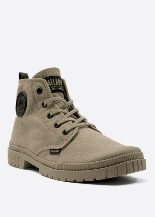 Обувь „Palladium” первоначально производилась в Лионе, Франция. Производство обуви „Palladium” началось после Второй мировой войны. Сегодня „Palladium” принадлежит американской компании K-Swiss и производится в Китае и Вьетнаме. Их обувь прочная и легкая, водонепроницаемая и из быстросохнущей ткани, выдерживает ходьбу, ползание, бег и лазание. Если их дизайн стал вневременным, то это потому, что он отвечает основным требованиям прочности, износостойкости, времени и тенденциям.