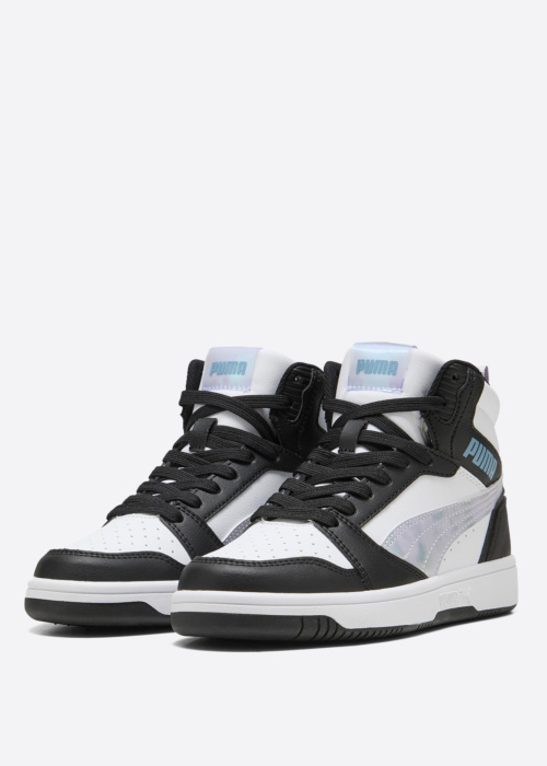Кроссовки Puma Rebound V6 для девочек представляют собой стильную и практичную обувь, идеально подходящую для активного отдыха. Они выполнены в современном двухцветном дизайне, который придаёт им модный вид. Благодаря шнуровке, кроссовки удобно сидят на ноге. Перфорация в области носка обеспечивает хорошую вентиляцию и комфорт при носке. Боковые стороны украшены эффектным логотипом бренда Puma, что добавляет обуви уникальности и узнаваемости.