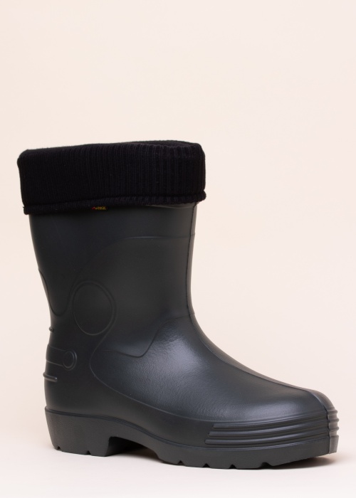 Изготовленные из EVA материала термо-сапоги Demar Farmer особенно лёгкие тёплые и практичные. Благодаря микроскопическим воздушным пузырькам, образованная пористая структура обеспечивает термоизоляцию при температуре до -30ºC. Вынимающуюся подкладку можно стирать в стиральной машине при 40ºC. Внутренняя подошва приятно мягкая, толстая с узором внешняя подошва имеет хорошее сцепление с различными поверхностями. Вес изделия 46-го размера 359 г. Цвет: тёмно-зелёный. Подходят и для более широкой стопы