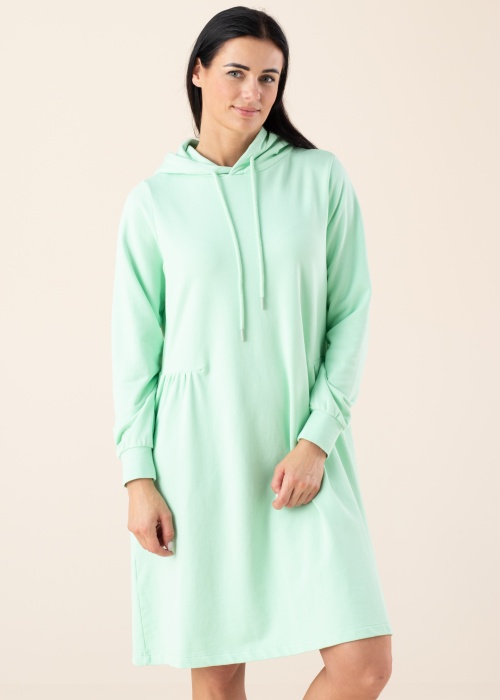 Одноцветное толстовка-платье Bugatti обнимет тебя своим уютом. Капюшон толстовка-платье- длинные рукава, мягкое и хорошее. На концах рукавов имеет соник , также удобства добавляет эластичность материала. Рост модели - 176 см и носит размер S.
