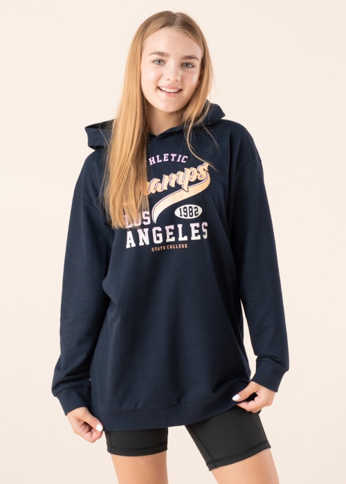 Со вкусом кофта Name It Kids подходит для активных будней. Удобная и капюшон кофта- из ткани для спортивных костюмов и просторный дизайн. Перед украшает надпись и как на краях рукавов, так и снизу соник. Рост модели - 147 см и носит размер 146-152.