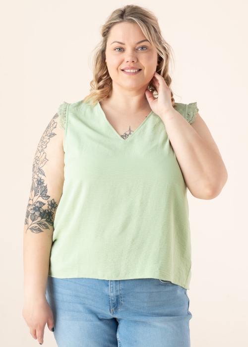Красивый топ Vero Moda Curve подходит для наслаждения летними днями. Симпатичный v-горловина топ - без рукавов тонкий и хорошо обвисающий. Привлекательности добавляет кружево на плече. Рост модели - 167 см и носит размер 46.