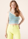 Классный топ Noisy May подходит для летного ношения. Молодёжный и укороченная длина тела топ- вязаный и без рукавов. Удобства добавляет эластичность материала. Эффектная добавка, дополняющая выбранную одежду! Рост модели - 174 см и носит размер S.