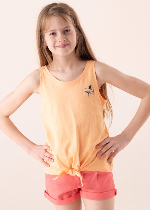 Топ от Tom Tailor незаменим в жаркий летний день. Топ из органического хлопка имеет надпись на груди и декоративный узел внизу. Изделие из экологически чистой коллекции Be Part изготовлено из органического хлопка. Рост модели 147 см, изделие в размере 152.