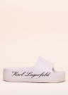 Модный и эффектный шлепки Karl Lagerfeld - смелый стиль. Поверхность скомбинирована синтетический и акцента добавляет надпись бренда , также стильный дизайн добавляет изящности. Внутри без подкладки , межподошва из пенистой резины добавляет гибкости шагу, резиновая подошва хорошо цепляется с различными поверхностями. Отличный выбор, если Вы цените смелый стиль