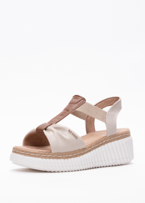 Женские туфли от Tom Tailor представляют собой стильный и современный выбор для летнего сезона. Эти туфли имеют платформенную подошву, что обеспечивает комфорт и придаёт модный вид. На обуви можно увидеть фирменные логотипы, а боковая часть украшена резинкой для удобства. Детали на каблуке добавляют изысканности и делают эту модель уникальной.