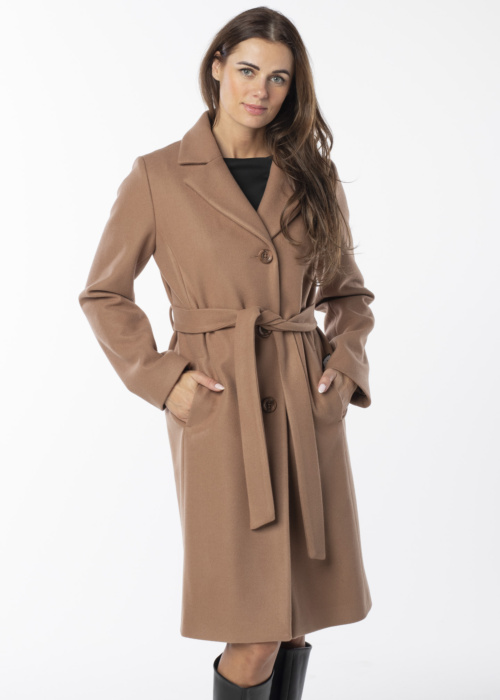 Женское весенне-осеннее пальто Brenna от Hansmark — это классическая и элегантная модель. Пальто застегивается на пуговицы спереди и имеет пояс, который можно завязать на талии. По бокам расположены удобные карманы. Модель имеет рост 176 см и носит размер S.