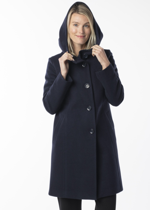 Пальто Hansmark для женщин, предназначенное для весны и осени, модель Roberta, представляет собой классический вариант с капюшоном, который выгодно подчеркивает талию. Оно выполнено из более плотной ткани, что делает его подходящим для прохладной погоды. Пальто застегивается на пуговицы спереди и имеет боковые карманы. Капюшон обеспечивает дополнительную защиту от ветра и дождя, что делает это пальто идеальным выбором для прохладных дней. Модель на фото имеет рост 177 см и носит размер 38.