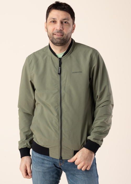 Урбанистическая весенне-осенняя куртка Didriksons подходит для стильного мужчины. Лёгкая покрой Relaxed Fit весенне-осенняя куртка- горловина как у бомбера и прямой дизайн. Полочки застёгиваются на замок , сбоку имеет карман на кнопке , также как на краях рукавов, так и снизу соник. Практичности добавляет внутренний карман на молнии. Рост модели - 188 см и носит размер L.