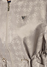 Женский бомбер жакет от Guess — это стильная и эффектная вещь с характерным воротником и свободным кроем. Он изготовлен из плотной ткани и имеет застежку-молнию спереди, а также шнурок на талии для регулировки посадки. Манжеты и нижний край выполнены из эластичного материала, что обеспечивает дополнительный комфорт. На поверхности жакета присутствует фирменный мотив бренда, а по бокам расположены удобные карманы. Модель имеет рост 176 см и носит размер S.