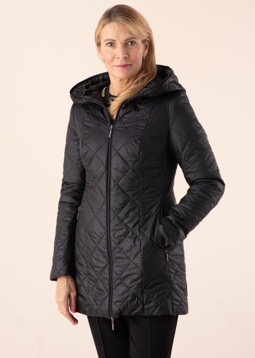 Весенне-осенняя куртка Vivika-V Hansmark - твой лёгкий и практичный спутник для прохладной погоды. Товар - со стёганой отделкой и приталенная. Полочки застёгиваются на замок, карманы замки и низ свободно свисает. Простой дизайн привлекает своей чистотой и капюшон зафиксирован. Рост модели - 178 см и носит размер 38.