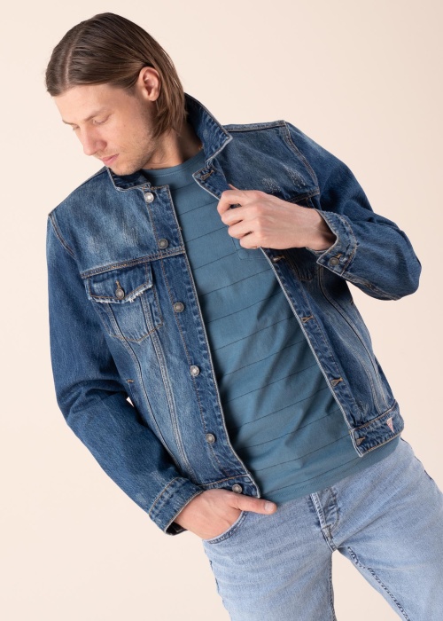 Благодаря простому, классическому дизайну джинсовая куртка Guess Dillon является непревзойденным выбором для повседневной носки, сочетаясь с различными брюками и блузками. Воротник придает солидный стиль, неподвластный времени. Спереди застегивается на классические пуговицы. Два накладных кармана с застежками на пуговицах расположены на груди, а два открытых кармана - по бокам. Застежка на пуговицах на манжетах позволяет при желании закатать манжеты. Модель имеет рост - 193 см и носит размер L. Длина составляет 65 см.