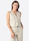 Жилет EsQualo для женщин — это стильный элемент гардероба с классическим дизайном. Он украшен полосатым узором и застегивается на пуговицы. Также у него есть декоративные карманы, что придает ему элегантный вид. Модель ростом 176 см носит размер 36.