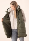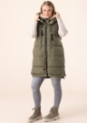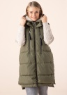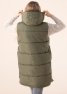 Модный жилет Only Nora - удлинённого фасона и объёмный. Жилет застегивается спереди на молнию, по бокам помещены открытые карманы. На нагрудной части - карманы на молнии, капюшон фиксированный. Пушистый утеплитель защищает от холода. Рост модели 168 см, носит размер S.