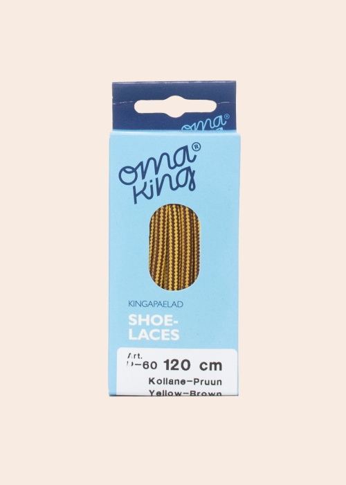 Текстильные, плетёные шнурки с пёстрым, жёлто-коричневым узором в стиле верёвки от Oma King – прочные и подходят для освежения ботинок! Изготовлены из полиэстера. В комплекте два шнурка длиной 120 см.