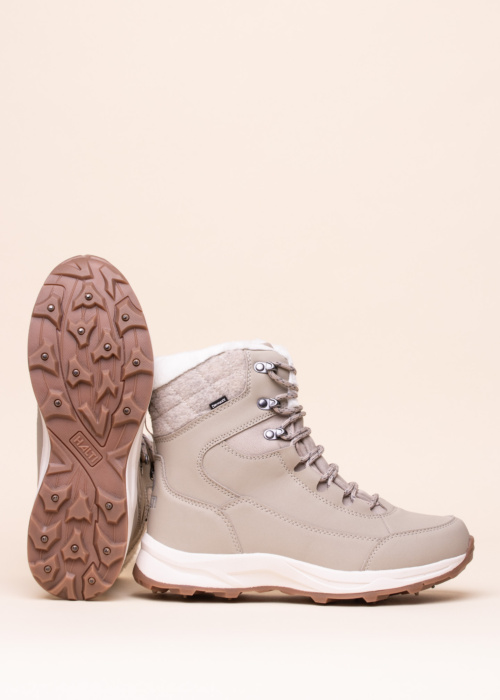 Женские ботинки Halti Duffus DX с шипами на подошве отлично подходят для зимы. Они легкие и удобные, что делает их комфортными для длительной носки. Благодаря водоотталкивающим свойствам, ваши ноги останутся сухими даже в дождливую погоду. Ботинки сохраняют тепло, что делает их идеальным выбором для холодных дней. Материал, из которого они сделаны, позволяет ногам дышать, предотвращая перегрев. Практичный дизайн с декоративным швом на боковой части придаёт обуви стильный вид. Шнуровка спереди и светоотражающий элемент сзади обеспечивают дополнительную безопасность и удобство.
