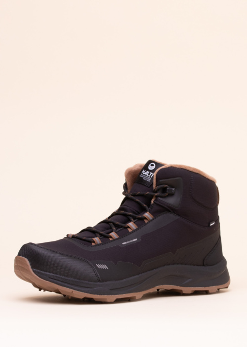Мужские ботинки Halti Kenai с ледовыми шипами идеально подходят для холодной зимней погоды. Они практичны и обеспечивают высокий уровень комфорта благодаря продуманному дизайну. Водонепроницаемая мембрана защищает ноги от влаги, сохраняя их сухими даже в сырую погоду. Внутренний утеплитель гарантирует тепло и уют в самые морозные дни. Материалы ботинок обладают дышащими свойствами, что позволяет ногам оставаться свежими. Спереди и сзади расположены светоотражающие элементы для безопасности в темное время суток. Шнуровка на передней части ботинок обеспечивает надежную фиксацию и удобство в носке.
