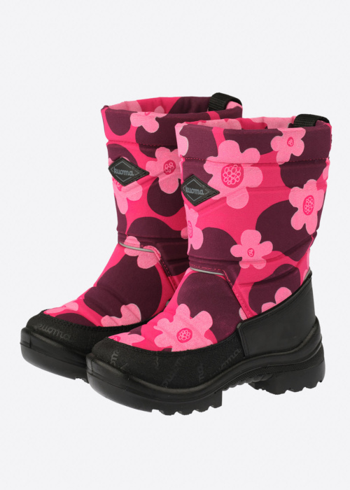 Kuoma девичьи зимние сапоги с высоким голенищем - это легкие, уютные и практичные сапоги с цветочным узором. Они обладают водоотталкивающими свойствами и хорошо сохраняют тепло, что делает их идеальным выбором для холодной зимней погоды. На передней части сапог расположен логотип, а также имеются светоотражающие элементы спереди и сзади для дополнительной безопасности. Эти сапоги обеспечат комфорт и защиту в зимние дни.