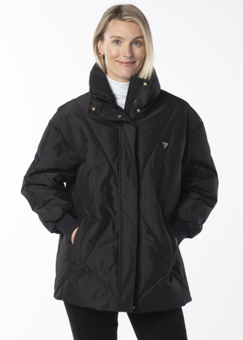 Женская зимняя куртка Stefy от Guess — это стильный и элегантный выбор для холодного времени года. Высокий воротник и стеганый дизайн придают куртке изысканный вид, а удобная посадка делает её идеальной для повседневного ношения. Спереди расположена застежка-молния, а на груди — логотип бренда. Куртка также оснащена открытыми карманами спереди и декоративной деталью под левым карманом.
