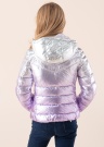 Весенне-осенняя куртка Guess Thermore изготовлена с использованием Thermore Ecodown Fibers технологии, в результате чего изделие является лёгким, тёплым, структурным и сохраняющим форму. Изготовлено из переработанных волокон. Поверхность куртки с блеском с эффектом металлик. Застёгивается удобно спереди на молнию, по бокам помещены открытые карманы. Резиновая кайма на рукавах и нижнем крае придаёт изделию лучшую посадку. Высокий воротник и съёмный капюшон защищают от холода. Внутренняя поверхность покрыта гладким полиэстером, что облегчает одевание. Толстый утеплитель хорошо защищает от холода. Рост модели 146 см, носит размер 152. Длина изделия от ворота до нижнего края 52,5 см. Материал: поверхность: полиамид 100%, подкладка, утеплитель: полиэстер 100%. Цвет: фиолетовый/металлик.