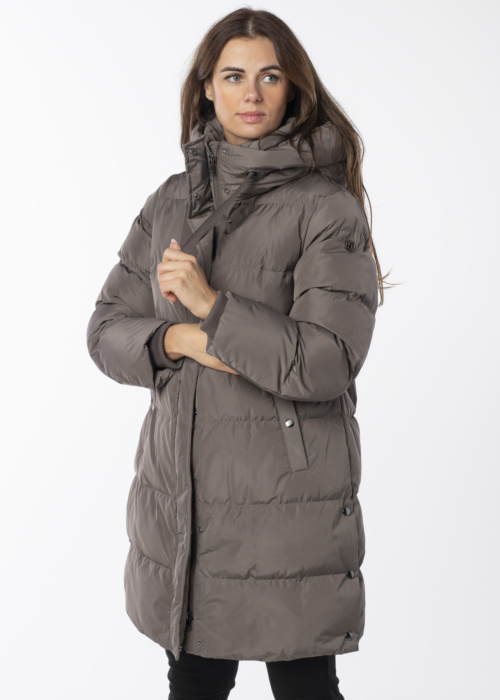 Saki naiste talvemantel on hubane ja klassikaline valik, mis hoiab sind soojas ja kaitstuna külma eest. Mantlil on fikseeritud kapuuts ja tepitud tegumood, mis lisavad mugavust ja stiili. Esiküljel on trukkidega taskud ning varrukaotstes soonik, mis tagavad praktilisuse ja mugavuse. BIONIC-FINISH ECO tehnoloogia annab mantlile vee- ja mustusehülgavuse, hoides värvid kauem värsketena ning võimaldades kangal kiiresti kuivada. Modelli pikkus on 176 cm ja kannab suurust 38.