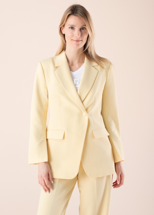 Viisakas ja elegantne Selected Femme pintsak Freddy kuulub naisele, kes armastab kanda enesekindlaid lõikeid ning stiile! Nööpkinnitusega pintsakul on kaunis reväärkrae ning kaks klapiga esitaskut, mis loovad pintsakust klassikalise ja silmapaistva kombinatsiooni. Varrukate otstes ning tagumisel alumisel äärel on naiselikud lõhikud, mis lisavad pastelsele rõivale stiilse viimistluse. Siidjal polüestrist voodril asub vasakul pool pisike nööpkinnitusega tasku. Modelli pikkus on 177 cm ja kannab suurust 36. Pikkus turjast alaservani on 73,5 cm.