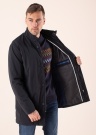 Selected Homme meeste riiete bränd väljendab kirge suurepärase kvaliteedi ja kohandatud lähenemise vastu, keskendudes minimalismile. Kilejast nailonist pealispind on mati viimistlusega, pakkudes head ilmastikupidavust nii vetthülgavuse kui ka tuulepidavuse näol. Moodsa püstkaelusega mantli hõlmad kinnituvad eest lukuga ja seda kaitseb nööpidega katteliist. Küljetaskud on avatud tegumoega ja varrukad langevad vabalt. Sisemuse kehaosa vooderdab taaskasutatud polüester ning varrukate sisemust polüester ja soojustusena on kasutatud taaslasutatud polüesterkiude. Isiklikke esemeid on turvaline paigutada vasaku hõlma siseküljel paiknevasse lukuga põuetaskusse. Täiendavale liikumisvabadusele aitab kaasa trukiga tagaküljele moodustatav trukiga lõhik. Modelli pikkus on 188 cm ja kannab suurust L. Pikkus turjast alumise servani on 88 cm.