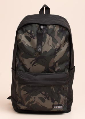 Moodsa militaarmustriga adidas seljakott. Suur põhisahtel on kahepoolse lukuga avatav ja sisemus on varustatud arvutitaskuga. Esikülje lisasahtel on lukuga avatav. Reguleeritavad õlarihmad on pehmendusega, olemas ka kandesang. Esiküljel brändi logo.