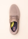 Isikupärased Skechers vabaajajalatsid Delson 3.0 sobivad stiiliteadlikule mehele. Need atraktiivsed vabaajajalatsid on praktilised ning kerged. Pealispind on tekstiilist ja laseb jalal kenasti hingata ning aktsenti lisab põnev disain ja pilku püüab reljeefne muster taga. Nii sisepinda kui ka sisetalda on katmas mugav tekstiil. Air-Cooled Memory Foam sisetald on jalavõlvi toetav, võtab kandja jalakuju ja pakub seeläbi hubasust ning pehmust liikumisel. Välistald on kergest vahtkummist ning summutab põrutusi.