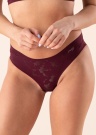 Sloggi aluspesu märksõnaks on piiritu mugavus, mis väljendub ka aluspükstes Zero Lace. Imeilusast bordoopunasest värvist läbikumav mustriline kangas lausa sulab ümber keha ning rõhutab sinu naiselikkust. Antud mudel garanteerib, et on riiete all täiesti nähtamatu. Modelli pikkus on 176 cm ja kannab suurust S.