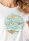 Kena Soyaconcept pluus Marica Fp 288 sobib erineva iseloomuga päevadesse. Malbe mõnusalt pehme pluus on ümara kaelusega ja hästi istuv. Esikülge ilmestab efektne printpilt ning varrukatel on tagasi keeratud viimistlus. Modelli pikkus on 178 cm ning kannab suurust S.