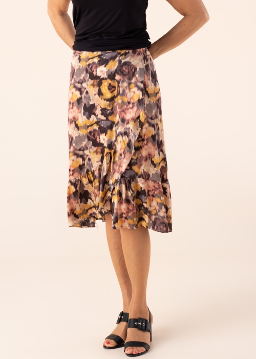 Kirju mustriga Soyaconcept seelik Darwin loob väljapeetud visuaali. Läikivast siidjast kangast seelikul on hõlmiklik lõige, serva ääristab sats ja vasakult küljelt kinnitub peidulukuga. Modelli pikkus on 178 cm ja kannab suurust 36. Üldpikkus antud suurusel on 72 cm.