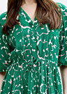 Tom Tailor naiste kleit on ideaalne valik suvepäevade nautimiseks, pakkudes põnevat mustrit ja naiselikku stiili. See kerge ja hingav kleit on valmistatud LENZING™ ECOVERO™ kiust, mis on saadud sertifitseeritud taastuvatest puiduallikatest, järgides kõrgeid keskkonnastandardeid. Regular Fit lõige tagab mugavuse ja kaasaliikuvuse igas olukorras.