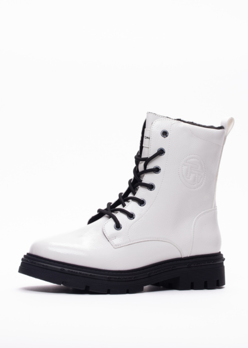 Tom Tailor naiste poolsaapad Ebba on trendikad ja stiilsed jalatsid, mis sobivad ideaalselt igapäevaseks kandmiseks. Need poolsaapad paistavad silma läikiva viimistluse ja väljapaistva paelkinnitusega ees. Lisaks on neil praktiline lukk siseküljel ja brändi logo välisküljel.