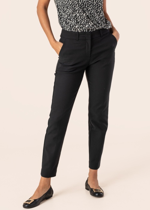 Tom Tailor naiste püksid on klassikalised ja ühevärvilised, sobides nii argiseks kui ka esinduslikuks kandmiseks. Pükstel on elastne kummivärvel, mis tagab mugavuse ja hea istuvuse, ning neid iseloomustab slim fit lõige. Ees on avatud taskud ja taga imitatsioontaskud, lisaks on värvlil lukk ja haak. Toode on valmistatud BCI tunnustusega vastutustundlikult kasvatatud puuvillast, pakkudes nii stiili kui ka keskkonnasõbralikkust. Modelli pikkus on 177 cm ja kannab suurust 36-30.