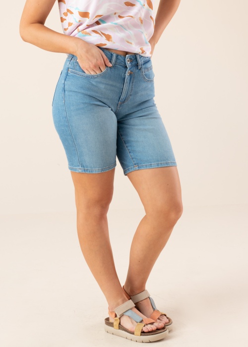 Klassikalised Tom Tailor püksid sobivad ideaalselt igapäevaseks kandmiseks. Suvised kõrge värvliga püksid on elastsed ning hästi istuvad. Värvel kinnitub nööbi ja lukuga ning esi- ja tagaküljel on avatud taskud. Toode kuulub Be Part kollektsiooni, olles loodud jätkusuutlikest materjalidest. Modelli pikkus on 168 cm ning kannab suurust 27.