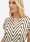 Tom Tailor naiste t-särk on stiilne ja mugav valik igapäevaseks kandmiseks. Sellel on V-kaelus ja lühikesed varrukad, mis lisavad naiselikku elegantsi. Põnev muster ja elastne materjal tagavad kaasaliikuva ja lõdvestunud istuvuse, sobides erineva iseloomuga päevadesse.