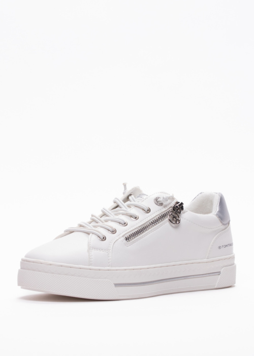 Tom Tailor naiste tennised on atraktiivsed ja stiilsed, sobides suurepäraselt kevad-sügis hooajal kandmiseks. Need praktilised tennised on varustatud kummipaeltega peal, mis tagavad mugava ja kindla istuvuse. Välisküljel asuv lukk lisab praktilisust ja lihtsustab jalanõude jalga panemist. Kannaosal olev logo ja dekoratiivne element annavad jalanõudele unikaalse ja trendika välimuse. Need tennised on ideaalne valik naistele, kes hindavad nii mugavust kui ka stiili.