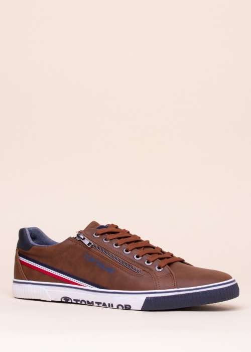 Atraktiivsed Tom Tailor tennised sobivad stiiliteadlikule mehele. Pealispind on valmistatud kunstnahast ja aktsenti lisab brändi ikooniline motiiv ning praktilisust lisab lukk välisküljel. Sisemust vooderdab tekstiil ja sisetald on pehmendusega ning vastupidavast kummisest materjalist välistald pakub stabiilse ja kindla sammu. Ole valmis igaks vahvaks päevaks!