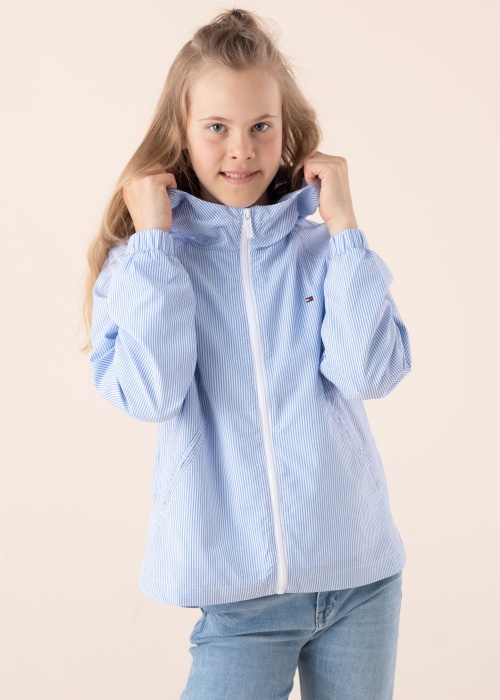 See kerge Tommy Hilfiger kevad-sügisjope on ideaalne peale tõmbamiseks jahedamatel hetkedel! Kõrgem krae läheb sujuvalt üle mugavaks kapuutsiks ning hõlmad on avatavad täispikkuses tõmblukuga. Külgedel paiknevad kaks avatud tegumoega taskut, varrukate otstes mõnusalt elastsed äärised ning alaservas olevaid lõhikuid kaunistavad lipulogo värvides detailid. Klassikaline lipulogo on paigutatud vasakule varrukale ja rinnale. Kapuutsi ja kehaosa vooderdab polüestrist võrkkangas, varrukaid aga sile polüester. Modelli pikkus on 146 cm ja kannab suurust 152. Pikkus turjast alumise servani antud suurusel on 57 cm.