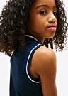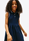 Tommy Hilfiger tüdrukute kleit on taljesse hoidev ja kena, sobides suurepäraselt igapäevaseks kandmiseks. Kleidil on ilma varrukateta disain, kannaga krae ning see on valmistatud pehmest ja elastset materjalist. Esi- ja tagaküljel asuvad nööbid ning brändi logo on uhkelt rinnal esindatud.